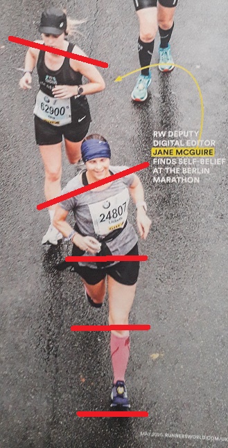 While cyclists are very good at pushing the foot to the ground using the thighs and exerting push, they often don’t learn to extend the leg back past the vertical. Instead almost as soon as the foot has landed they feel the stride is complete and pick the knee back up. Where the runner’s leg comes forward using elastic energy, the cyclist uses their strong thigh muscles and hip flexors to lift the knee ready for the next stride.