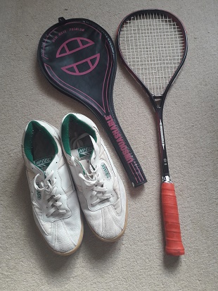 My racket was made by a company called Unsquashable and the headcover has a stylish mix of fluorescent pink and black. I rarely buy things based on looks but graphite rackets were becoming more attractive than the wooden and steel ones that preceded them and I think I bought this one because it had a larger sweet spot. Unsquashable still seem to be in existence, making rackets and I recall they were connected to Jahangir Khan, who was the best player of the 1980s.