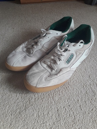 As the pictures attest I still have my squash racket and the Hi-Tec shoes I bought all those years ago. They’ve been up in the loft ever since. I thought I’d barely used the shoes as they look so clean and the soles are hardly worn. But when I looked inside, I could see the insoles had been worn around the ball of my big toe. I spent a lot of time on my toes and driving off the forefoot to get to balls quickly. The cleanliness of the shoes is no surprise because squash courts are clean and shoes don’t get dirty like running shoes would. I was obviously into Hi-Tec as my first pair of running shoes were Hi-Tec Silver Shadows which I think I bought for £25.