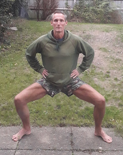 Horse stance is a pose where you squat down with feet out wide. Wim Hof set a world record by being able to hold this pose for three hours.