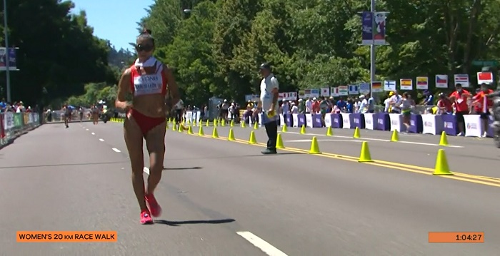 What I caught on Day 1 began with the field events of hammer and high jump along with a couple of track events, the Mixed 4x400M relay and preliminary heats of the Men’s 100M. But the real highlight was away from the stadium where we were treated to the Women’s 20KM walk!