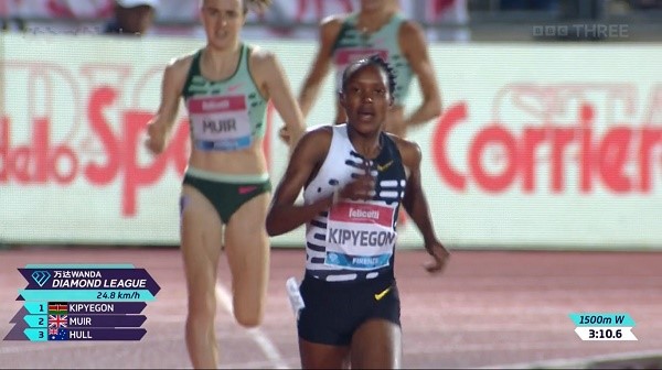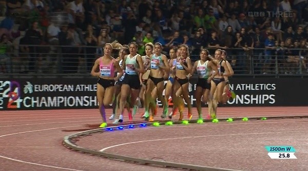 As the reigning Olympic and World Champion, Kenya’s Kipyegon who is approaching thirty years old was heavily favoured to win in Florence, Italy. While pacemakers are still present to lead runners out in the early laps, modern athletics now has a moving set of lights around the edge of the track to help with even pacing. These had been set at 62secs per 400m which equates to a 3:52.5 time.