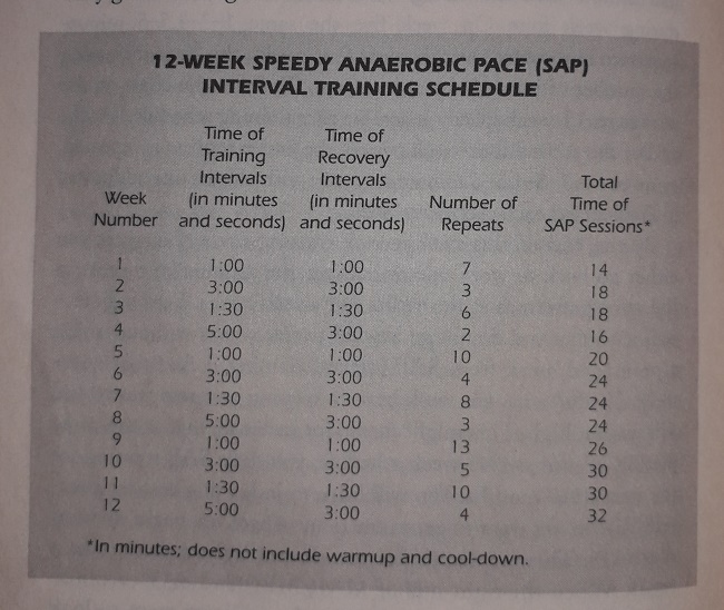 The SAP training sessions are quite light volume (in my opinion) involving intervals lasting from one-to-five minutes. On the first week you total only seven minutes in the SAP zone and in week twelve it maxes out at four intervals of five minutes – twenty minutes worth. Then he strongly recommends taking a prolonged break of three months from SAP workouts; so only doing two blocks per year.