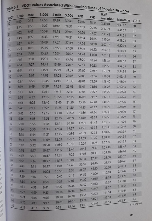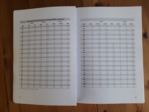 Last month I ran a 6:48 mile to celebrate Banister’s Mile. I know that’s not fast but I’ve been concentrated on building strength in the gym and working on very short distances – I expected my aerobic base to erode and it did. But if I take a look at Jack Daniels’ VDOT tables he estimates a 6:49 mile equates to a 23:09 5K which is relatively close to the 22:54 I ran at parkrun a few days later. It’s not perfect but it’s not frustrating me into thinking I can run over a minute quicker than I’m capable.