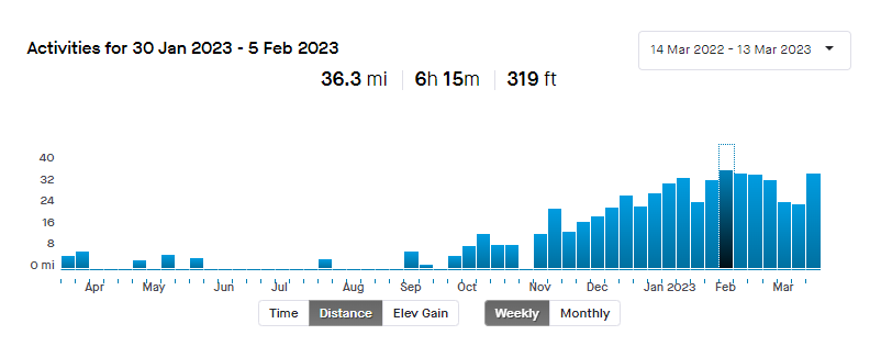 My intention is to start rebuilding my running mileage when my gym membership finishes. Given it rarely gets that hot where I live, I won’t mind doing all the longer runs during the spring and summer. In the meantime it has been lovely not to have to train in the high winds, cold and rainy days of winter as I’ve done for the past decade. It’s given me a chance to mentally refresh myself after a decade-plus of running almost every day.
