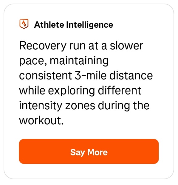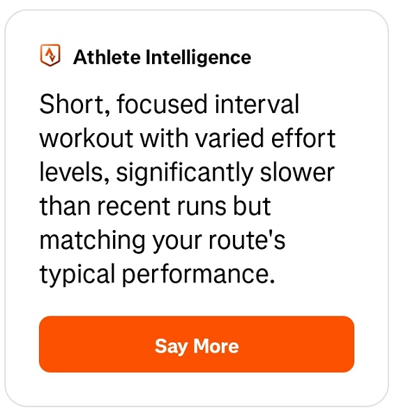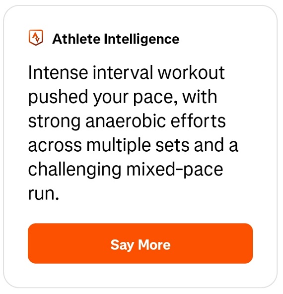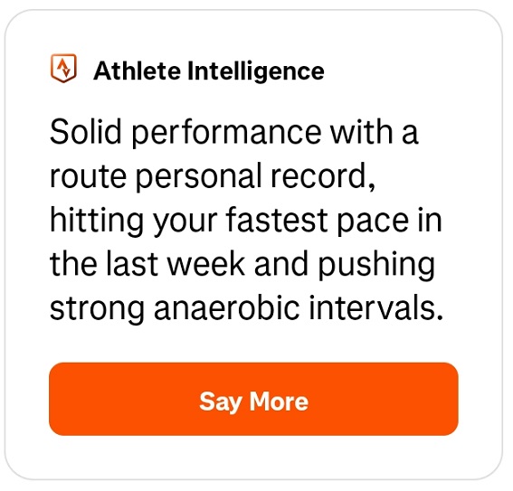With each run you upload there is Athlete Intelligence feedback to tell you about the run or workout you’ve just done. For example, this is what it stated for the run I’d just done at time of writing …